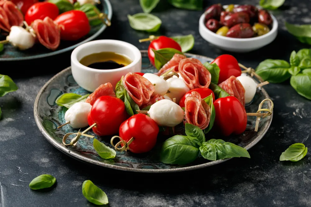 Pour une présentation originale, piquez vos brochettes dans un melon recouvert de film alimentaire. Cette astuce permet de maintenir les brochettes droites tout en créant un centre de table coloré. Vous pouvez organiser les brochettes par rangées identiques ou les alterner selon les légumes utilisés.